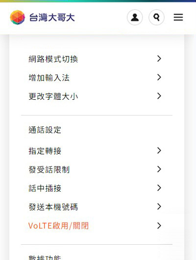 (2)手機設定開啟 4G 語音服務(VoLTE)功能。