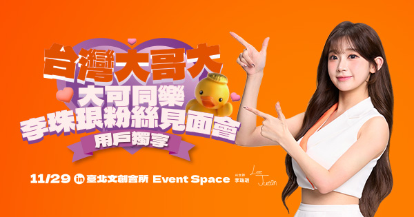 - 「大可同樂 李珠珢粉絲見面會」係指2025/11/29於臺北文創會所Event Space舉辦之李珠珢粉絲見面會(價值新台幣$2,965),見面會活動詳細資訊將陸續公布於台灣大哥大官網與官方社群,台灣大哥大保留審核、終止、變更活動內容之權利。