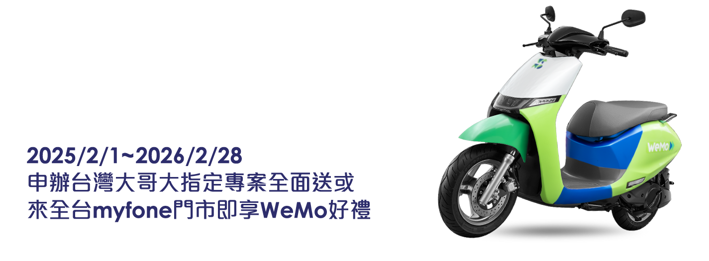 (5)WeMo PASS服務及兌換序號由WeMo提供,詳情以兌換時WeMo最新規範為準,詳細內容可至WeMo網站https://www.wemoscooter.com/twm詳閱。