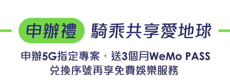 (2)活動內容:於活動時間申辦台灣大哥大5G指定方案 ,享WeMo PASS 3個月(90天)免費(本活動不適用企客專案)