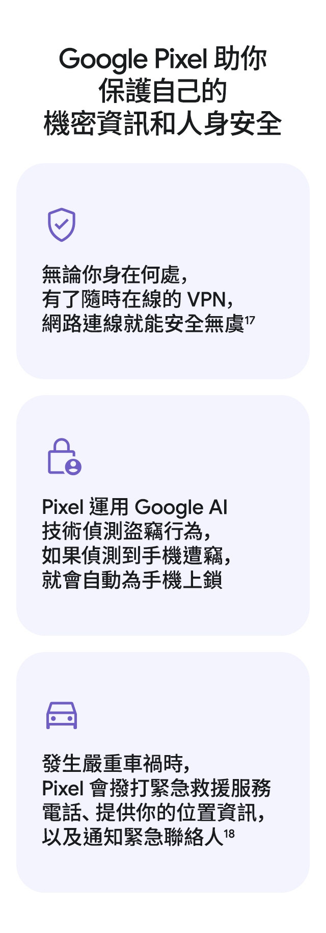 - 指定續約資格最高折$3,000:係指115/3/5至115/3/31期間,符合續約資格之用戶,(1) 續約升轉5G專案(需綁約,不含企業客戶專案),搭配Google Pixel 10a,享手機最高折$1,000元之優惠。(2) 現持Google機 款的用戶,且續約5G月租型指定案,搭配Google Pixel 10a,享手機最高折$1,000元之優惠。上述續約升轉及回娘家折價優惠,可與舊機換新折價優惠併用。若所申辦機款之專案價格低於折價金額,則實際折 抵金額以機款專案價格為限,最多折至$0。除了可與舊換新併用外,不與現行其他續約折價併用。企客案不適用此折價。