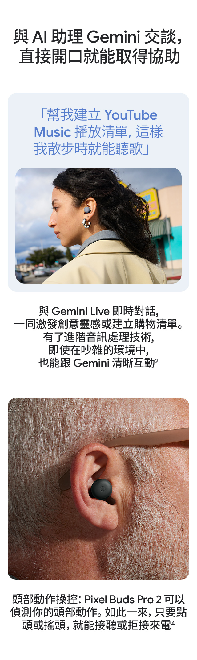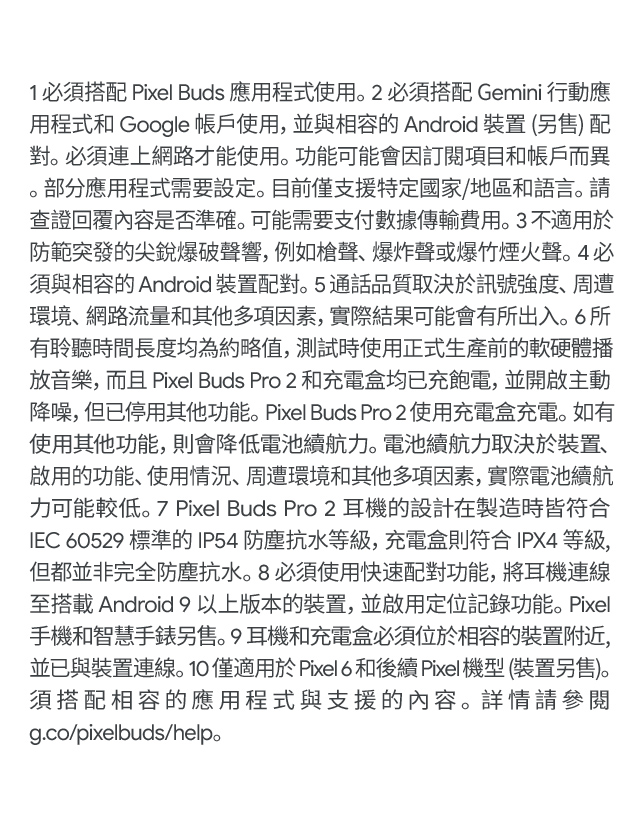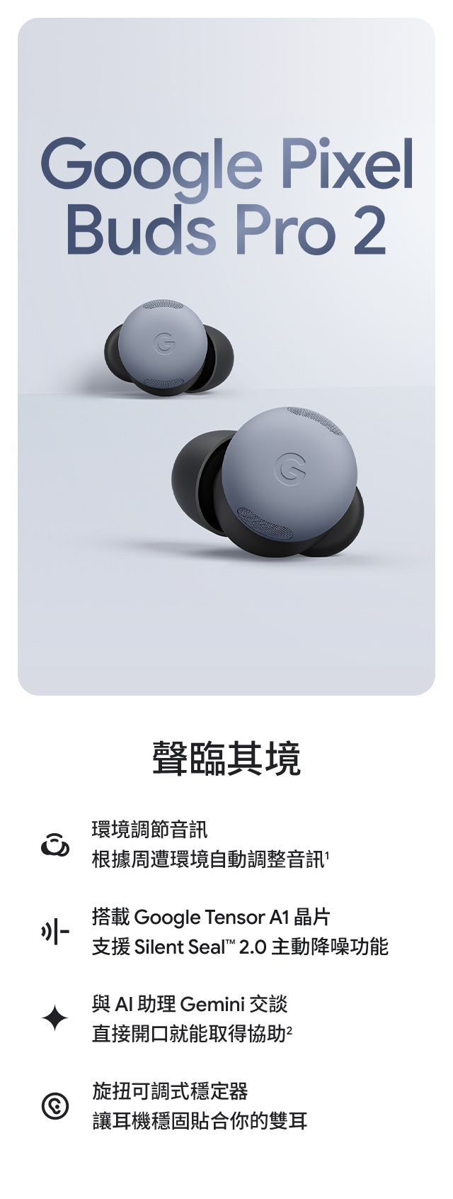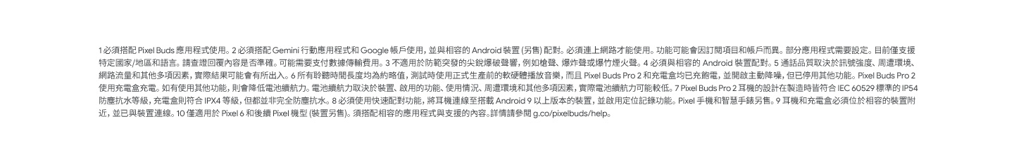 - 114/10/1-114/10/31搭配指定專案,藍牙耳機 0元帶回家:係指申辦4G/5G 599型(含)以上資費專案,綁約30個月,並搭配Pixel Buds Pro 2專案價$0,部分專案須預繳。