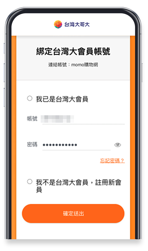❹ 輸入台灣大會員帳號/密碼,即綁定成功