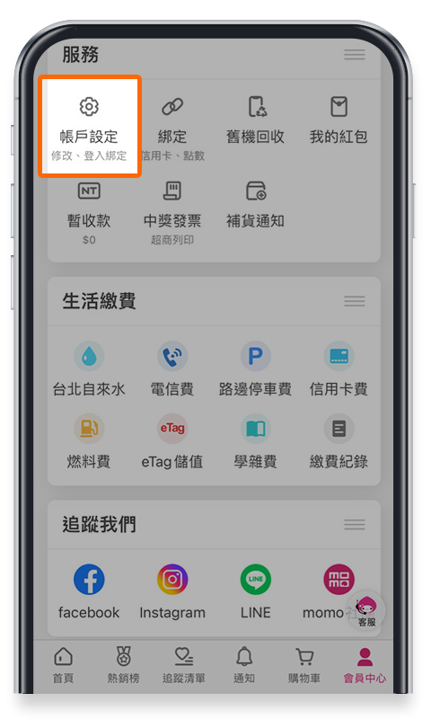 方式二:台灣大哥大官網 / 台灣大哥大APP【會員登入】以momo帳號快速登入