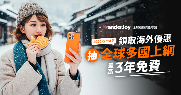 2025/10/28 - 2026/2/28 申辦原號漫遊並領取海外優惠 抽上網漫遊吃到飽 3年免費(1名).1年免費(2名)