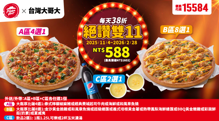 查看詳情【必勝客】絕讚雙11 38折優惠