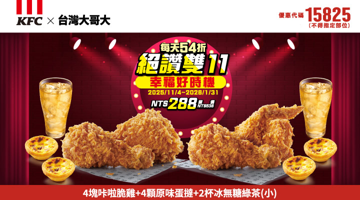 查看詳情【肯德基】雙11幸福好時雞 54折優惠