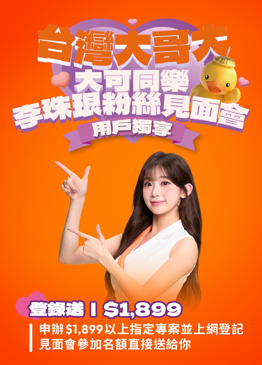 「申辦 5G 1,899 型指定專案及機款抽大可同樂|李珠珢粉絲見面會參加名額」係指(1)新申辦 / 攜碼 / 續約月租型 1899 型以上指定專案生效搭配指定機款並實際完成門號開通;申辦指定好速專案者需同時專案生效且寬頻完成竣工(新申辦 / 攜碼 須符合 門號已開通 / 改接生效、續約 須符合 專案已生效),並於 2025/11/02 前至台灣大官網活動頁面登錄成功之用戶,可獲得《大可同樂|李珠珢粉絲見面會》入場資格乙組,限量 200 名,依台灣大哥大系統登錄時間先後為準,送完為止,且前200名無法同時享有前述抽獎資格。如登錄者未滿 200 名,剩餘參加名額將併入前述申辦 5G 1,599 型登錄抽之抽獎方式抽出;如登錄者超過 200 名,未獲得入場資格者,將併入前述申辦 5G 1,599 型登錄抽之抽獎方式抽出,並享有兩次抽獎機會。