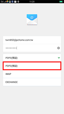 4.請依照您的電子郵件類型點選,此範例為點選【POP3預設】