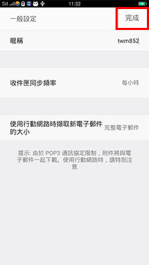 5.請依照您的email供應商提供的資料輸入,再點選【完成】