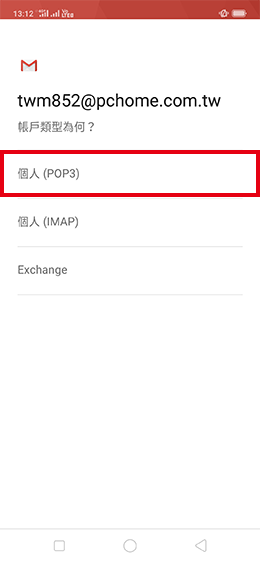 6.請依照您的電子郵件類型點選,此範例為POP3