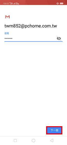 7.輸入您的電子郵件密碼,再點選