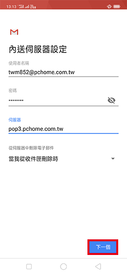 9.請依照您的email供應商提供的資料輸入,再點選