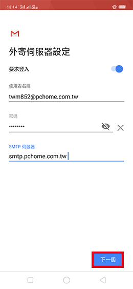 8.請依照您的email供應商提供的資料輸入,再點選