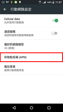 5.點選【存取點名稱(APN)】