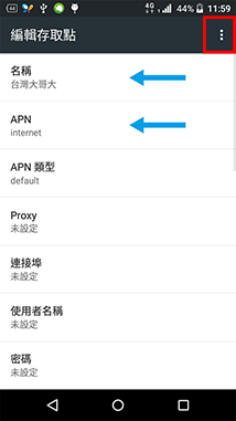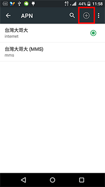 6.確認有【台灣大哥大(Internet)】設定值即可,若需新增APN,請點選【+】新增APN
