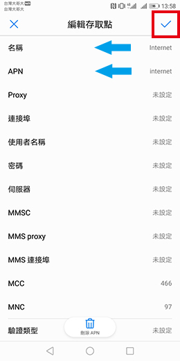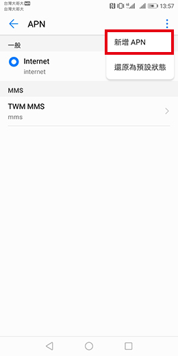 設定值即可,若需新增APN,請點選畫面右上方的
