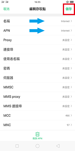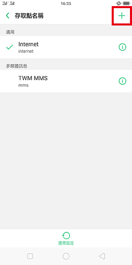 設定值即可,若需新增APN,請點選畫面右上方的