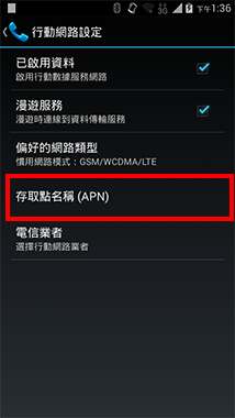4.點選【存取點名稱(APN)】