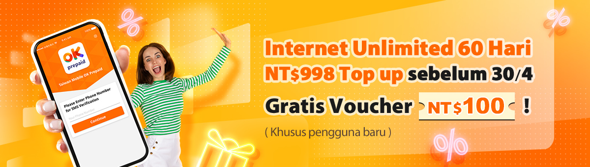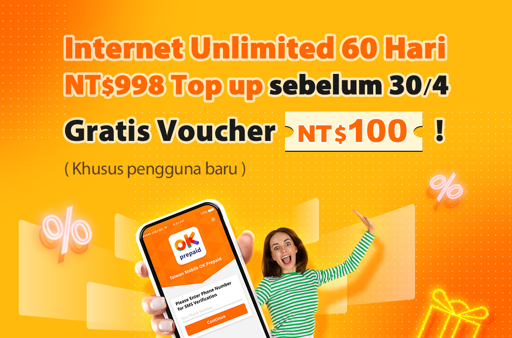 - Isi ulang paket Internet Unlimited 60 Hari (NT$998) di myfone atau minimarket sebelum 30/4 dan dapatkan Gift Card NT$100! Kode gift card digital akan dikirim melalui SMS bulan depan. Penawaran berlaku hanya untuk pengguna baru.