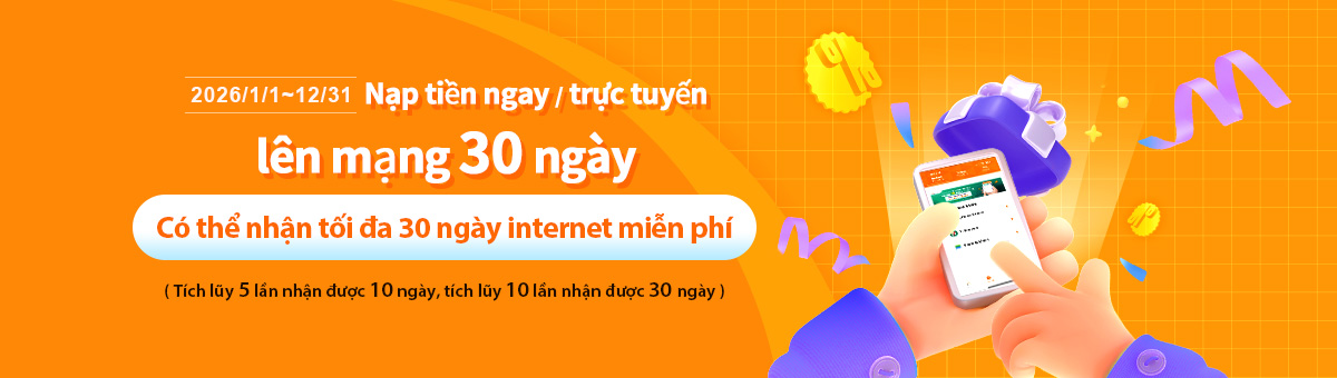 • 10 ngày lên mạng không giới hạn (trước 20GB tốc độ cao, vượt 20GB giảm tốc độ xuống dưới 5Mbps) và 20 ngày lên mạng không giới hạn (trước 40GB tốc độ cao, vượt 40GB giảm tốc độ xuống dưới 5Mbps) phù hợp tư cách hoạt động, ngày 15 tháng sau sẽ tặng (ví dụ : Trước tháng 7 nạp 5 lần, 15/8 sẽ được nhận 10 ngày lên mạng, Trước tháng 12 nạp 10 lần, 15/1 sẽ được nhận 20 ngày lên mạng, người dùng có thể vào ứng dụng OK Prepaid App BONUS kiểm tra mật mã tặng.