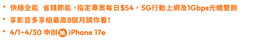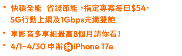 - 網路門市限定,申辦加碼抽iPhone 17e 256G (共3名)