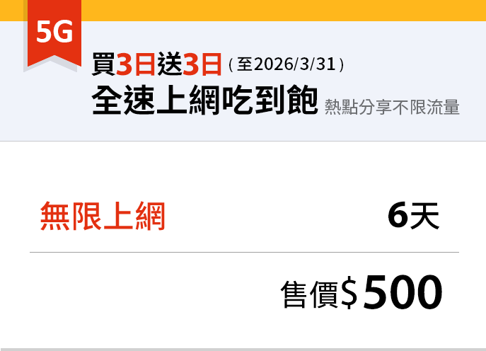 上網規範:同世代別限儲值同世代別上網產品 (4G門號儲值4G上網產品,5G門號儲值5G上網產品)