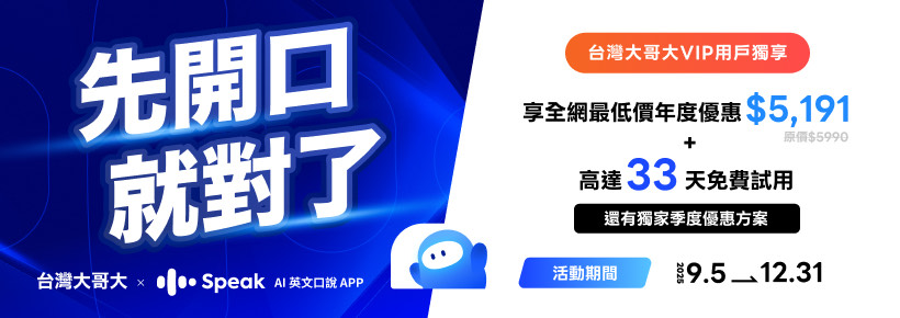 - ●本活動方案之優惠價格及免費試用天數僅限於Speak專屬活動頁面訂購。