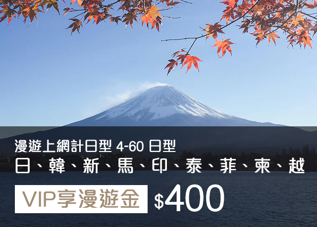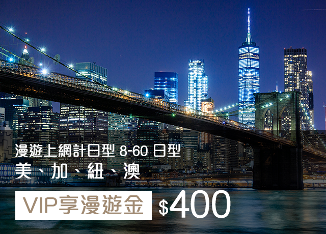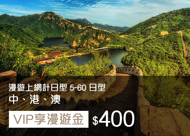 - 2.每位VIP用戶於每一年會籍期間,限獲原號漫遊指定方案之漫遊金優惠1組;二年會籍則獲2組,依此類推。本漫遊金優惠使用效期至VIP會籍到期日止,用戶須於效期內自行完成指定漫遊方案之預約及開通始得生效,並須於優惠期間內使用完畢。逾期未使用者,優惠將自動失效,恕不另行通知。