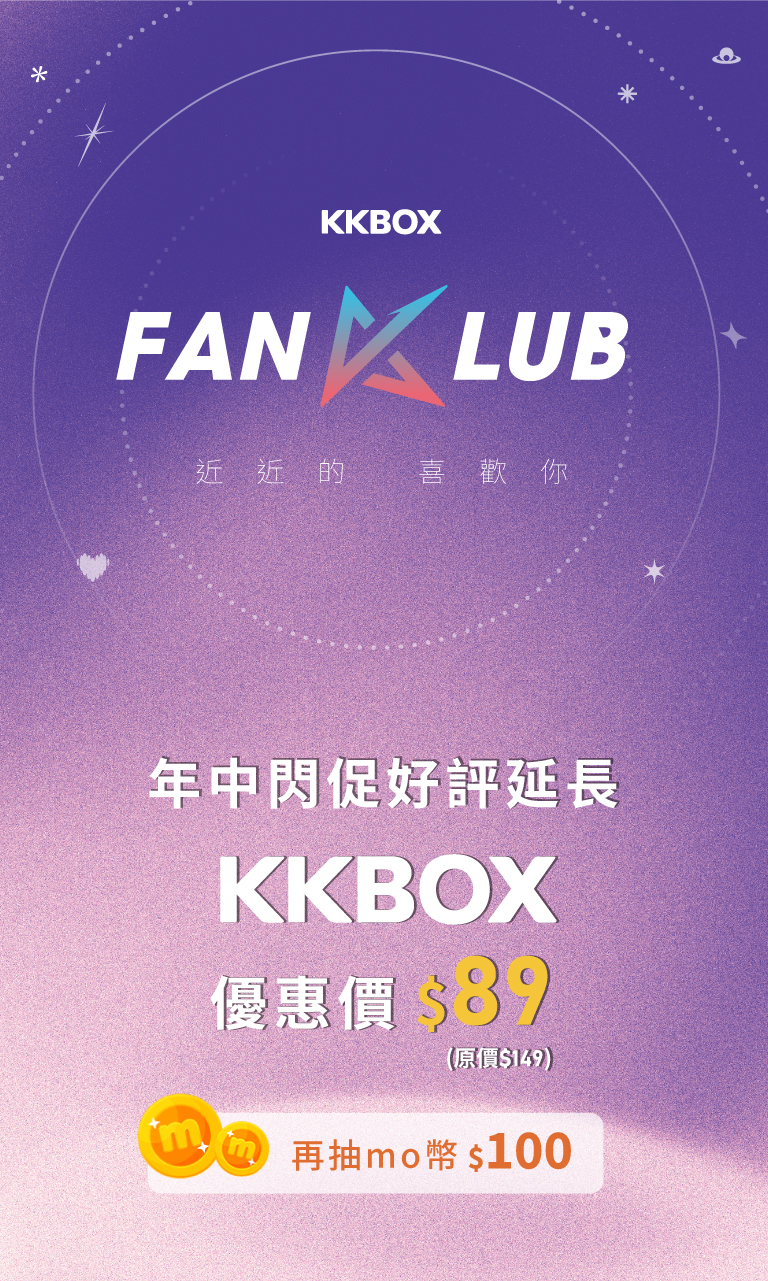 年中閃促最後倒數,9/30 前申辦KKBOX年約方案,每月只要$89(原價149元/月),再抽mo幣100元,暢聽KKBOX破億曲庫、獨家Podcast節目,還能與歌手線上即時聊天互動。立即成為會員,用聆聽支持聲音創作者,解鎖更多限量獎品、演唱會門票等會員專屬好康!